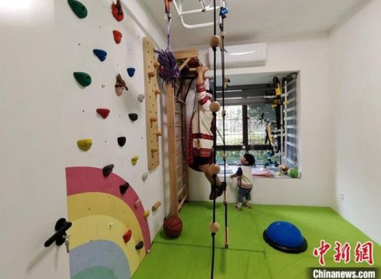 4月1日,廣西南寧,沙部·魯比在家中打造微型“運(yùn)動(dòng)場”。當(dāng)天,在桂臺(tái)灣教師沙部·魯比喬遷新居,實(shí)現(xiàn)跨越海峽的“安居夢”。 中新社記者 張廣權(quán) 攝