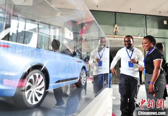 在一臺(tái)發(fā)動(dòng)機(jī)前,杜喬駐足許久,一邊仔細(xì)看著復(fù)雜的參數(shù),一邊和同伴交流。他感慨中國新能源汽車產(chǎn)業(yè)的技術(shù)水平之高,應(yīng)用成果之多!拔椰F(xiàn)在做的課題是儲(chǔ)能系統(tǒng),與智能控制、電力設(shè)備有關(guān)!倍艈陶f,自己的研究成果未來可以應(yīng)用于汽車領(lǐng)域。