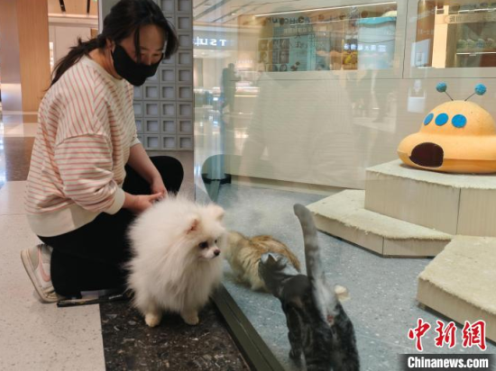 位于吉林長春的一座寵物友好商場內(nèi),張慧正在對寵物狗進行一些特別的訓(xùn)練。