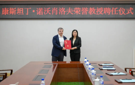 在聘任儀式上,郝群代表學(xué)校向康斯坦丁·諾沃肖洛夫教授頒發(fā)長春理工大學(xué)榮譽(yù)教授聘書。會談結(jié)束后,康斯坦丁·諾沃肖洛夫教授在東區(qū)圖書館報(bào)告廳為長春理工大學(xué)師生帶來了一場以“面向未來的材料”為主題的學(xué)術(shù)報(bào)告。