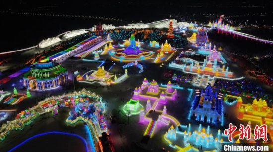 12月17日,第28屆長春冰雪節(jié)開幕,圖為長春冰雪新天地全景。(無人機(jī)照片)