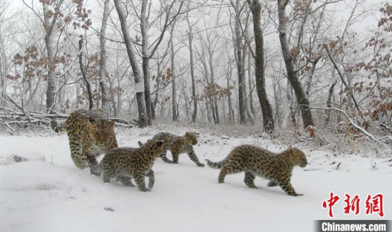 中新網(wǎng)長春3月29日電(記者 郭佳)記者29日從東北虎豹國家公園管理局獲悉,近期該局東寧市管護(hù)中心的工作人員在整理監(jiān)測數(shù)據(jù)時,驚喜發(fā)現(xiàn)四只東北豹同框的視頻畫面。