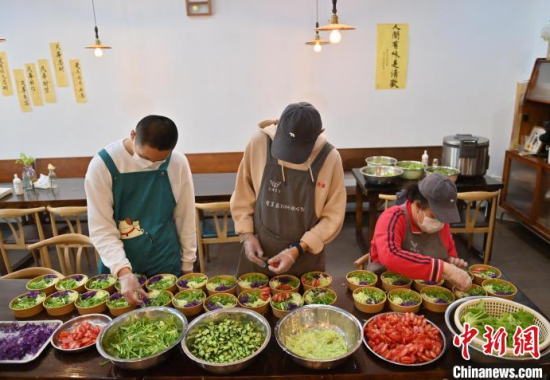 中新網(wǎng)長春5月8日電 (李彥國)8日的吉林長春陰雨綿綿,不過這并未影響到皓皓和伙伴們的工作熱情,切菜、擺盤、備餐……3名心智障礙青年在此開啟每天的“社會實踐課”,通過幫廚感知、融入社會。