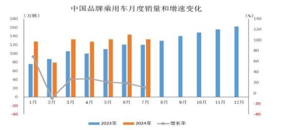 2024年1-7月,中國品牌乘用車共銷售874.2萬輛,同比增長21.6%,占乘用車銷售總量的62.6%,銷量占有率比上年同期提升8.8個百分點(diǎn)。(完)