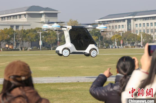 1月1日,江蘇南京,由東南大學科研團隊自主研發(fā)的國內首輛分布式電驅動飛行汽車“東大·鯤鵬1號”驚艷亮相。據(jù)了解,該飛行汽車技術源于東南大學機械工程學院車輛工程系與江蘇省智能電動運載裝備工程研究中心,集多項創(chuàng)新技術于一身。圖為“東大·鯤鵬1號”飛行汽車飛行。中新社記者 泱波 攝
