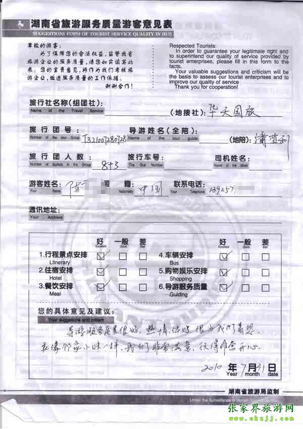 - 游客夏先生為表?yè)P(yáng)導(dǎo)游李姣姣寫來表?yè)P(yáng)信致我張家界... [14811]