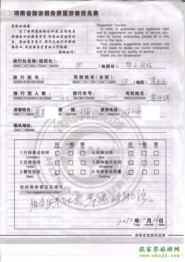 - 2011年10月26日張小姐一行18人旅游質(zhì)量反饋 [10482]