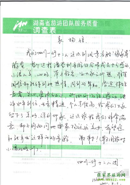 - 游客夏先生為表揚導(dǎo)游李姣姣寫來表揚信致我張家界... [14811]