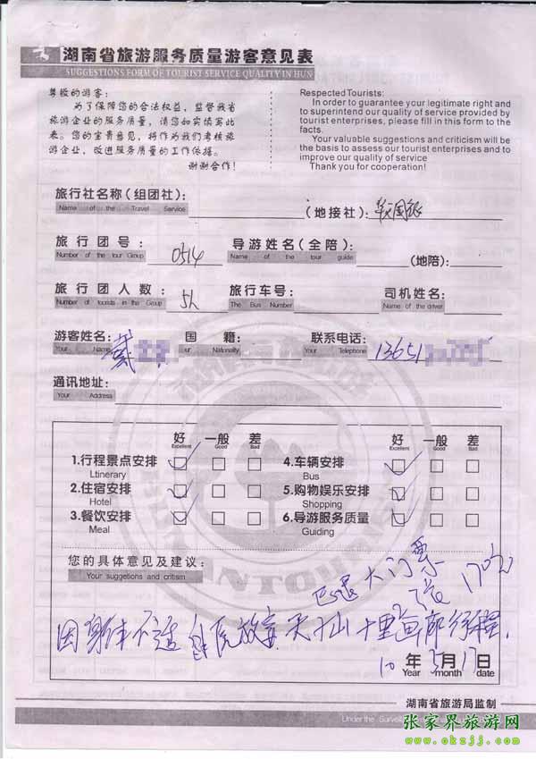 - 2011年10月26日張小姐一行18人旅游質(zhì)量反饋 [10482]