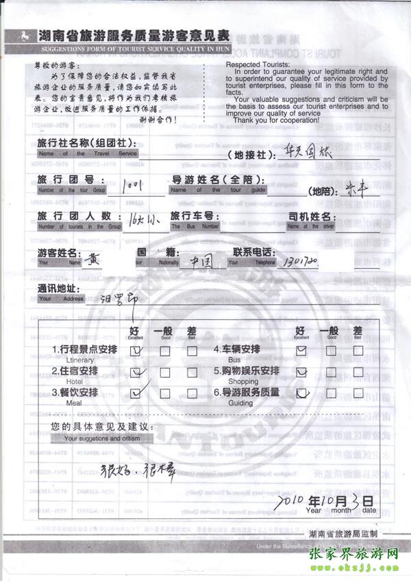 - 2011年10月26日張小姐一行18人旅游質(zhì)量反饋 [10482]