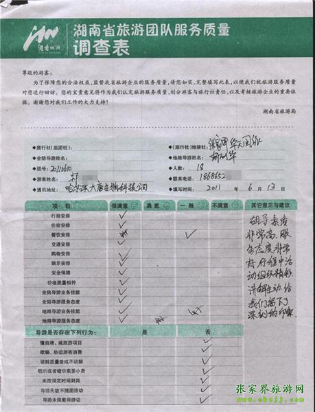 2011年6月13日鄭先生一行18人旅游質(zhì)量反饋:導(dǎo)游服務(wù)態(tài)度好,行程活動組織精彩