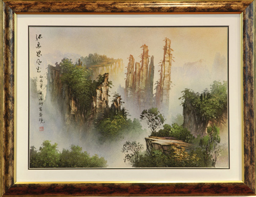 粘貼畫多以本境秀麗山水風(fēng)光與土家風(fēng)情為題材,富有立體感和真實(shí)感。