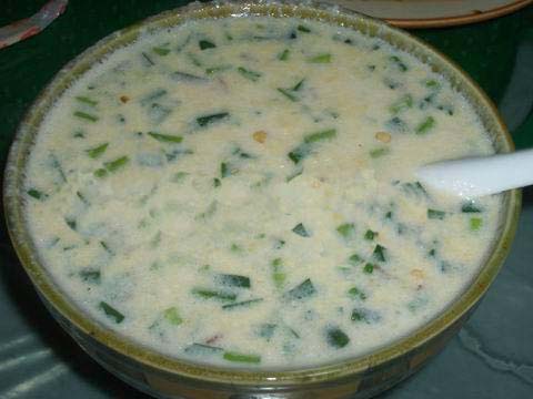 將用水浸泡過的黃豆用磨子磨碎,摻入切細(xì)的青菜葉,然后用溫火煮熟即可。此樣菜雖做法簡(jiǎn)單,但營(yíng)養(yǎng)價(jià)值極高且味鮮美,為當(dāng)?shù)厝顺S玫囊坏啦恕?/p> ■土家糍粑