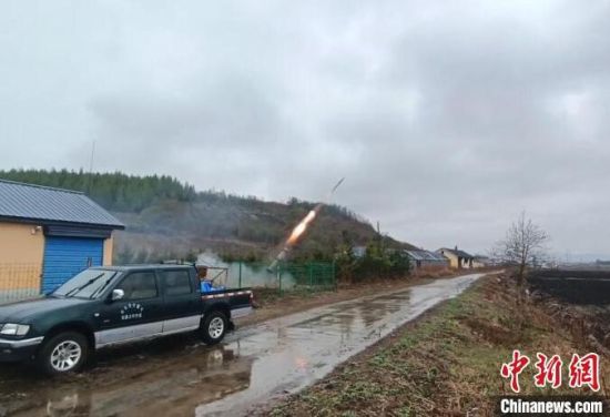 工作人員發(fā)射地面增雨火箭。 吉林省人工影響天氣辦公室供圖