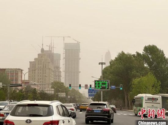 城市綠樹被沙塵籠罩。 郭佳 攝