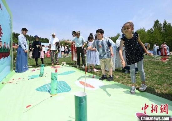 外國(guó)小朋友正在玩“投壺”游戲 張瑤 攝
