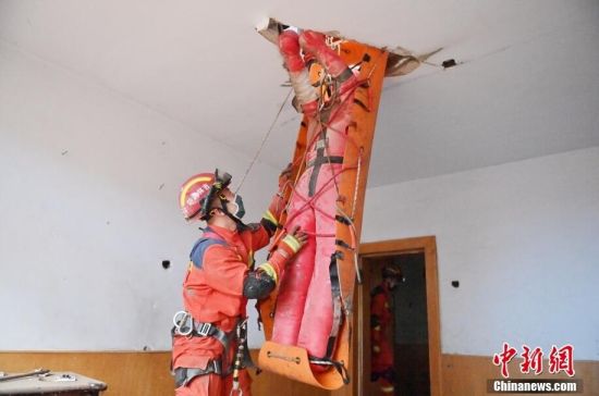 圖為救援隊(duì)員進(jìn)行綜合營救訓(xùn)練。張瑤 攝