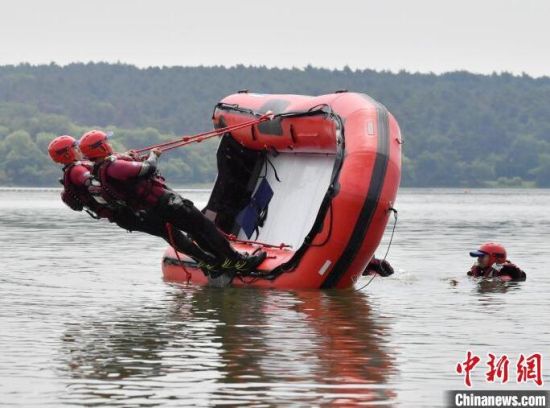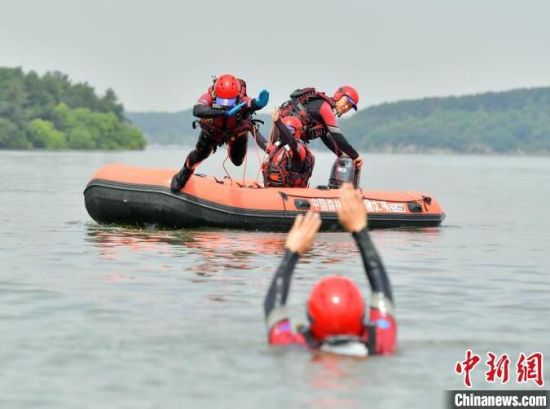 6月21日,吉林長春,消防救援人員正在進行水域救援翻舟自救科目訓練。目前,吉林省已進入汛期,吉林省森林消防總隊特勤大隊緊貼實戰(zhàn)水域救援任務,開展水域救援訓練。消防救援人員重點對橡皮艇操控、操舟繞標、翻船自救、O型救援等內容開展訓練,全面做好防汛搶險等綜合性救援任務準備。(完)
