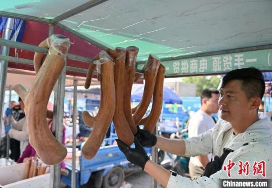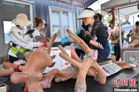 6月26日,位于長(zhǎng)春市雙陽區(qū)的鹿茸交易市場(chǎng),商戶在緊張忙碌。每年的五月至十月是梅花鹿鹿茸收割的季節(jié),“中國(guó)梅花鹿之鄉(xiāng)”長(zhǎng)春市雙陽區(qū)鹿鄉(xiāng)鎮(zhèn)也熱鬧起來,客商云集在已有上百年歷史的梅花鹿鮮茸交易市場(chǎng),搶抓鮮茸上市時(shí)機(jī),爭(zhēng)取采購(gòu)到質(zhì)量上乘的鮮鹿茸。(中新社記者 張瑤 攝)