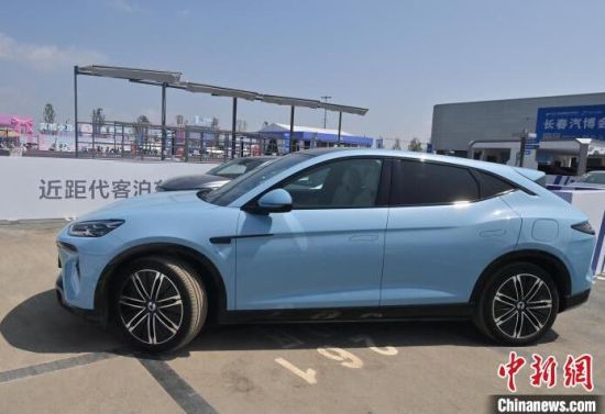 7月13日,吉林長春,參展商在展示安裝了自動(dòng)輪智行底盤汽車的原地轉(zhuǎn)向功能。在第21屆長春國際汽車博覽會(huì)上,汽車產(chǎn)業(yè)的前沿技術(shù)成果集中亮相,吸引參觀者的目光。(中新社記者 張瑤/攝)