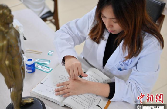 10月23日,吉林長(zhǎng)春,林玉花在練習(xí)針灸。來(lái)自泰國(guó)的林玉花是長(zhǎng)春中醫(yī)藥大學(xué)中醫(yī)內(nèi)科學(xué)的研究生,經(jīng)過(guò)一年多的深造,她越發(fā)愛(ài)上博大精深的中醫(yī)和中國(guó)傳統(tǒng)文化。林玉花說(shuō),她希望把在中國(guó)學(xué)到的中醫(yī)技藝帶回家,將來(lái)開(kāi)一家中醫(yī)館。中新社記者 張瑤 攝