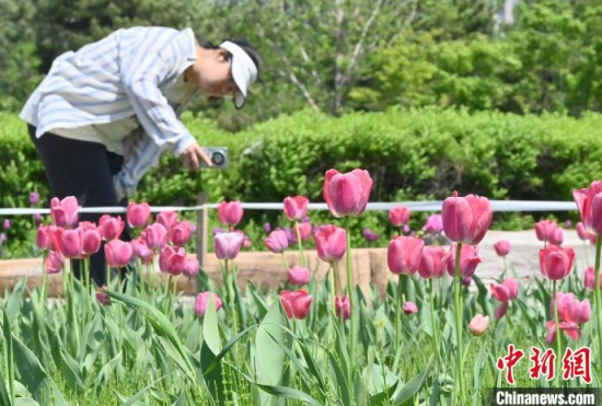 5月15日,在長(zhǎng)春市長(zhǎng)春公園內(nèi),近十萬(wàn)株郁金香競(jìng)相綻放,吸引了眾多游客前來(lái)觀賞。當(dāng)天,“幸福匯·郁見(jiàn)美好”長(zhǎng)春公園郁金香主題觀賞季系列活動(dòng)正式啟幕,游客在賞花觀景中享受夏日清涼。中新社記者 張瑤 攝