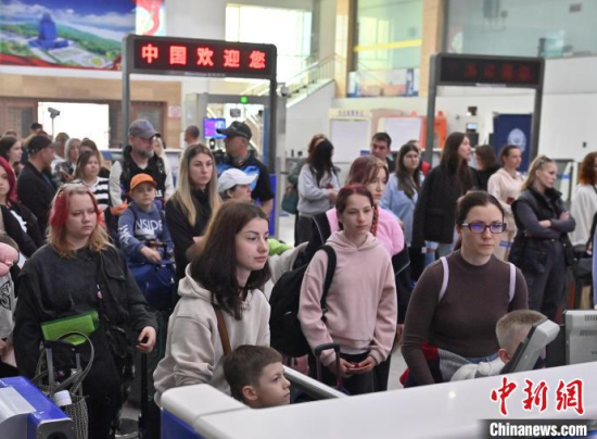 5月30日,吉林琿春,俄羅斯游客在商場購物。近年來,吉林省琿春市依托邊貿(mào)便利、服務(wù)完善等優(yōu)勢,正成為俄羅斯游客熱門跨境消費目的地。據(jù)琿春出入境邊防檢查站統(tǒng)計,今年以來,經(jīng)琿春口岸出入境的客流量超15萬人次。中新社記者 張瑤 攝