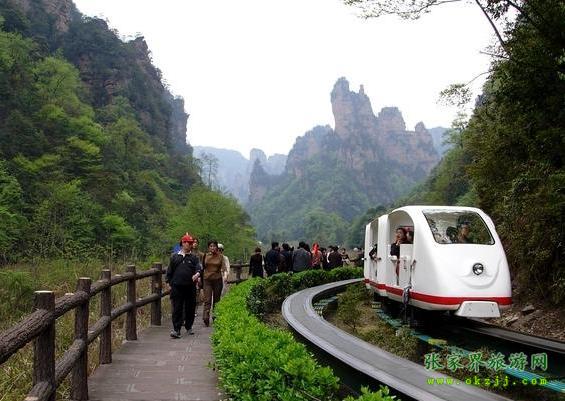 在十里畫廊盡頭。這里怪石嶙峋,林木蔥籠,常有三五成群成百上千只猴子在此會(huì)集,故稱猴子坡。游人至此,或樹叢之中,或山間古道,常見群猴在懸崖絕壁上攀援嬉戲,有的盲目在藤蔓上攀跳,有的獨(dú)坐巖石抓耳搔腮。惹得游人眉開眼笑,興味無(wú)窮。 從南天門向?qū)γ嫱ィ梢娙菹魇?,形如美女,婷婷玉立,故?ldquo;三女峰”。三女峰尤以第三峰奇妙,于石峰胸部有一直徑約1米乳眼, 由孔中可窺山后天光,既像高懸在石壁上的明鏡,又像少女佩帶著一枚晶瑩透明的玉飾。 過(guò)南天門繼續(xù)登山約200注,有一岔道口,叫月亮埡, 往右便是天子山石家檐景區(qū),向右斜上則通天臺(tái)。天臺(tái)海拔1020米,有東西兩個(gè)觀景臺(tái)。東臺(tái)為一懸空巨石,四周雜樹叢生,古松倒掛,是觀日出的理想之所。西臺(tái)俯視西海最妙,但見幽深莫測(cè)的峽谷中,千峰聳立,戴翠披綠,秀麗的景色盡覽眼底。 十里畫廊觀光小火車票價(jià):?jiǎn)纬?0元/ 人,雙程40元/人。優(yōu)惠門票價(jià)格單、雙程由現(xiàn)行每人次14元和19元調(diào)整為18元和24元。 優(yōu)惠政策規(guī)定:根據(jù)有關(guān)文件規(guī)定,十里畫廊觀光電車門票價(jià)格對(duì)身高不足1.2米的兒童實(shí)行免費(fèi);對(duì)身高1.2米至1.5米的未成年人實(shí)行優(yōu)惠;對(duì)24歲以下學(xué)生憑學(xué)生證享受優(yōu)惠;符合《殘疾人實(shí)用評(píng)定標(biāo)準(zhǔn)》的殘疾人、60周歲以上老人、現(xiàn)役軍人、烈士直系家屬、持有民政部門頒發(fā)的《城鄉(xiāng)居民最低生活保障金領(lǐng)取證》的人員憑有效證件享受優(yōu)惠;此外可在特定日期對(duì)特定群體(如教師節(jié)對(duì)教師、建軍節(jié)對(duì)軍人等)實(shí)行減免優(yōu)惠。 湖南唯一一家全國(guó)百?gòu)?qiáng)國(guó)際旅行社、湖南五星級(jí)旅行社:華天國(guó)際旅行社 品牌卓著,信譽(yù)度高,是游客理想選擇接待單位。