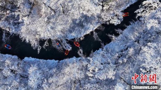 游客在冰天雪地里進(jìn)行漂流之旅。白山市新聞傳媒中心供圖