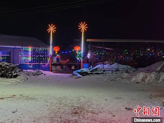 為慶祝春節(jié),大河森村玉米種植大戶(hù)們給庭院做起亮化工程!∏男 攝