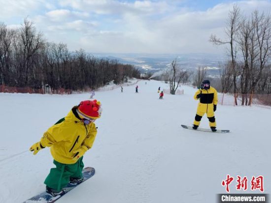 家長(zhǎng)帶領(lǐng)兒童在吉林市雪場(chǎng)滑雪。 李蕓 攝