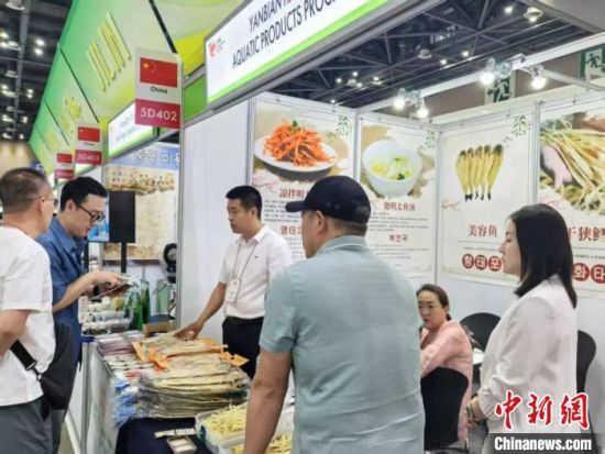據(jù)介紹,延邊州商務局率領的延邊經貿代表團攜10家本土企業(yè)參加該展。當?shù)氐娜藚⒖诜、凍干菜、黑木耳、特色煎餅、五谷鍋巴、干狹鱈魚等地道特產,以及冷面、拌面等延邊風味預制菜系列產品備受矚目,吸引眾多國際客商駐足洽談。
