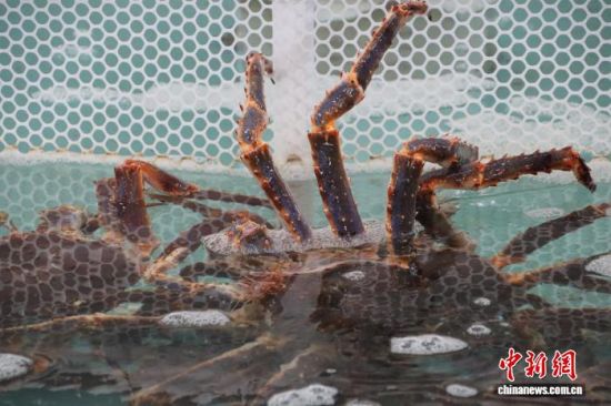 中新社記者近日走進(jìn)這座吉林省對(duì)俄公路口岸了解到,每年經(jīng)此入境的俄羅斯帝王蟹超過(guò)150萬(wàn)只,占全國(guó)市場(chǎng)的八成左右,是中國(guó)進(jìn)口帝王蟹最重要的門(mén)戶(hù)。
